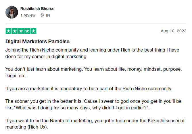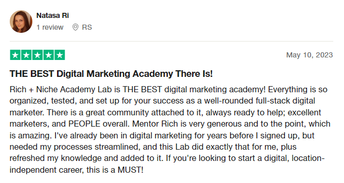 I was able to quit my corporate job at Tesla after Rich+Niche helped me get my first 5 clients and develop 4 different income streams.