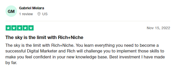 I was able to secure 4 clients within 4 months of joining Rich+Niche. Now I'm doing $12000/month recurring and ready to scale to $50k/month.